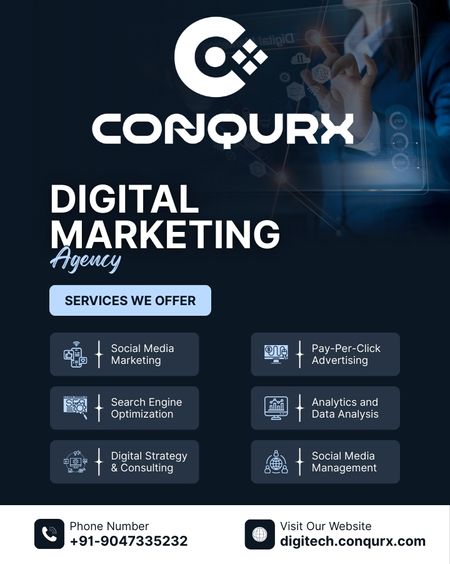 At Conqurx DigiTech, we focus on delivering one thing above all โ Results that matter. Our best service is helping businesses, institutions, and brands grow digitally with clarity and confidence. ๐น Digital Strategy & Marketing โ A complete roadmap to position your brand online. ๐น Creative Branding โ Designs, visuals, and storytelling that leave a lasting impression. ๐น Web & Technology Solutions โ Modern, responsive, and user-friendly digital platforms. ๐น Performance Campaigns โ Data-driven ads and promotions that maximize ROI. ๐น Education & Institutional Marketing โ Specialized strategies for schools, colleges, and universities. โจ With Conqurx DigiTech, your growth is not just a goal โ itโs our best service.